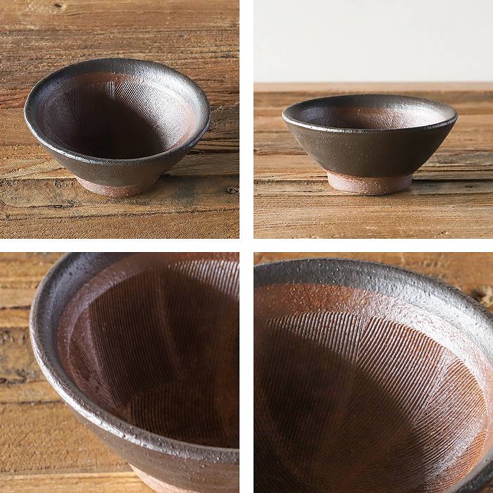 道具というものの美しさ。暮らしに寄り添ってきた「すり鉢」という道具。たどり着いた色合いも、姿も、櫛目の深さも。その造形は機能的に完成されていて凛と美しい。ドレッシングを作ったら、ぜひそのテーブルへ。底面に滑り止め加工を施すことで、使用時の安定感がアップ。