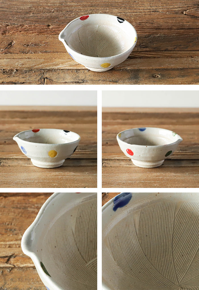 日本製 美濃焼 片口すり鉢 4号 5色水玉