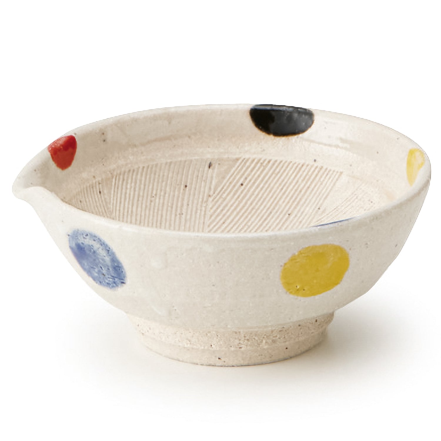 大根、やまいも、薬味…、和食では使用頻度の高いすり鉢に、おしゃれな水玉模様を描いたら…、和陶ならではのぬくもりあふれる器になりました。道具としての使いやすさと、器としての意匠性を兼ね備えたスグレモノです。