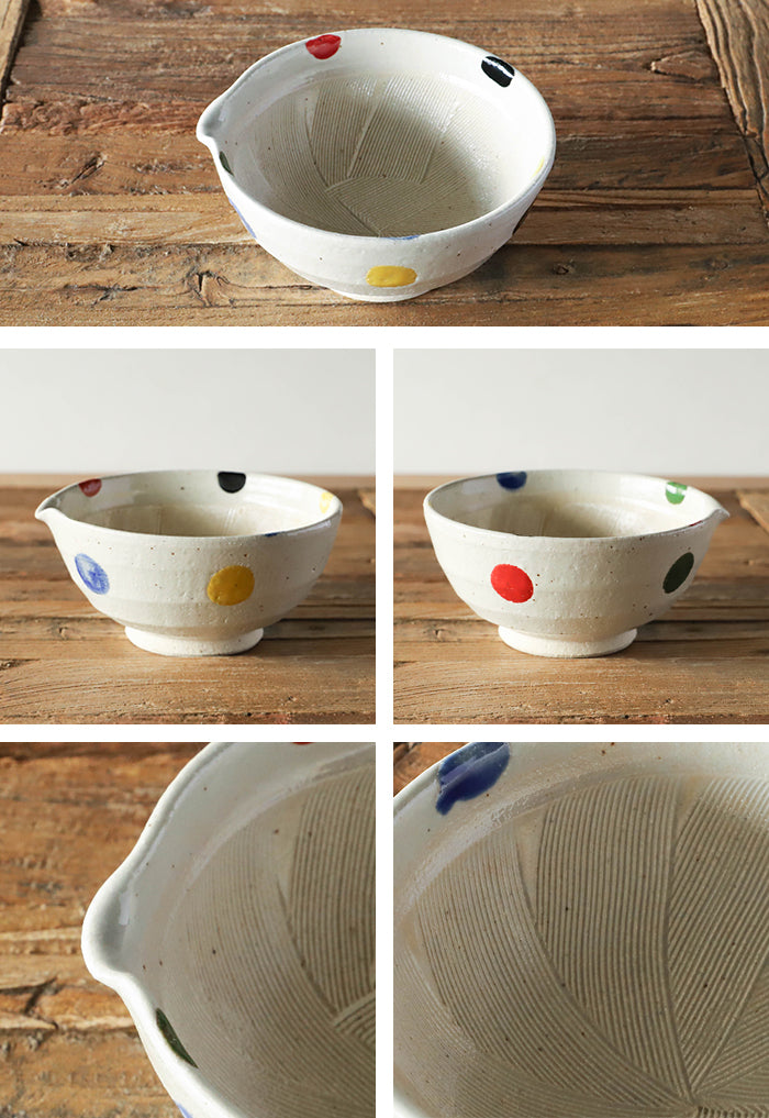 日本製 美濃焼 片口すり鉢 6号 5色水玉