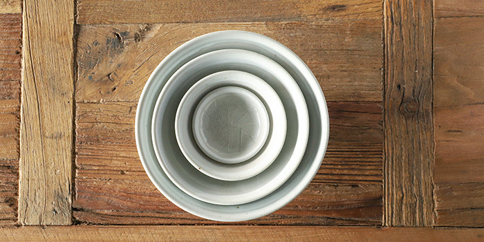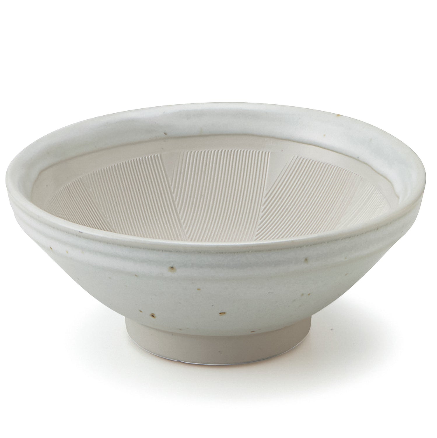 程よい重みと深さ、美味しくすれる櫛目…、昔ながらのすり鉢が、やっぱりいちばんですね。底面に滑り止め加工を施すことで、使用時の安定感がアップ。テーブルの上に直接置いて使えます。小皿タイプから大ぶり10号サイズまで、充実のサイズ展開も魅力です。