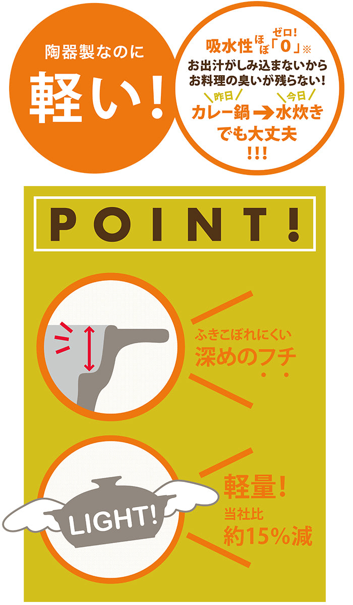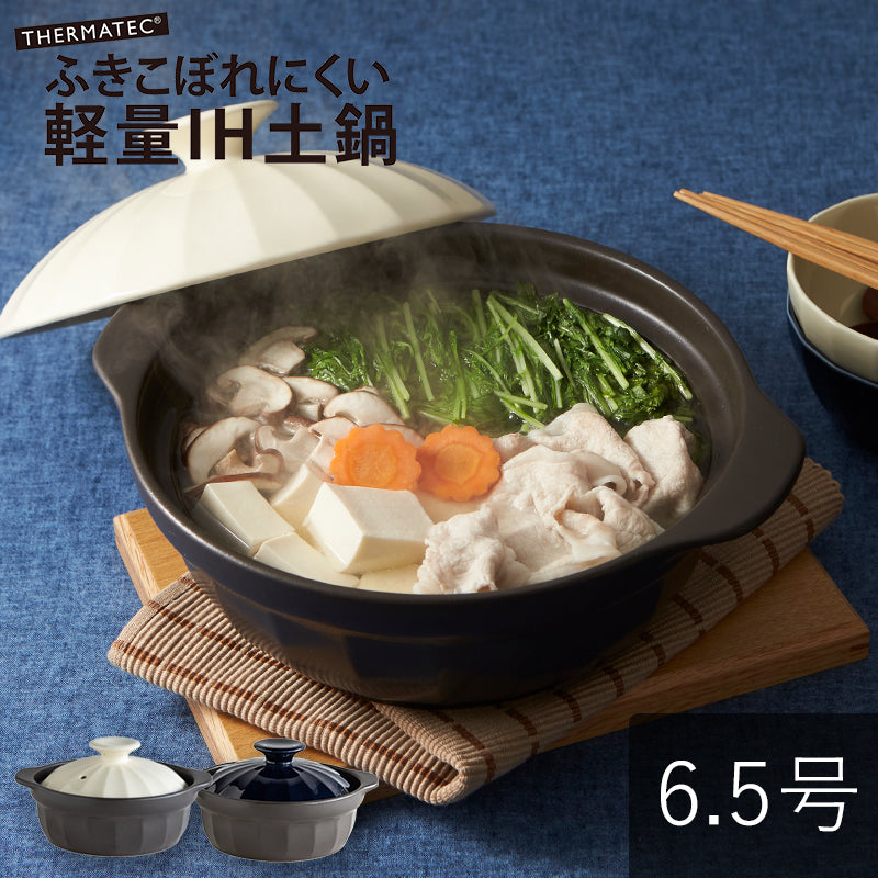 吹きこぼれにくい軽量IH土鍋 6.5号 カーサ