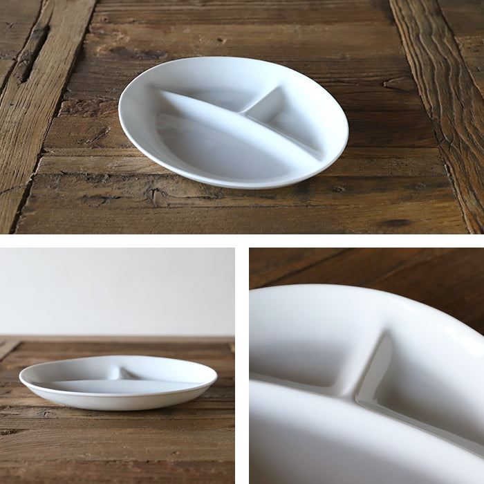 ワンプレートランチの魅力は、メインからデザートまで、いろんな料理が一同にのせてあること。好きな物が集まっているって、それだけでもテンションが上がります。軽量磁器だから、サービングも後片付けもラクラクです。