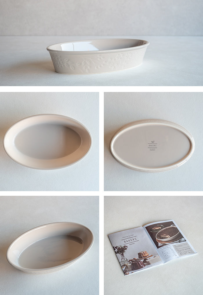 欧米では陶器の菓子型が多くありますが、日本では一般的ではありません。 日本での主流は、アルミやフッ素加工した金属製やシリコン製などですが、錆の発生や変形、また食材によっては酸化等が起こる場合があります。 また、これらはあくまで調理器具なので、そのままテーブルには出せません。 BAKERSは陶器製。焼きたてをそのままテーブルに出したり、型に入れたまま保存して味を浸み込ませたりと、容器を活かしたお菓子づくりが楽しめます。