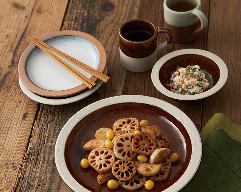 リム部分がくっきり目立っているから、テーブルの上で心地よいメリハリが生まれます。ほっこりとした和のぬくもりと、きっぱりとした潔さを併せ持つニューテイスト。