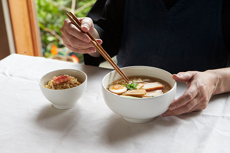 艶感のあるエレガントな白は、和洋問わずお使いいただけるシンプルなうつわ。食器選びに困った時に、とりあえず揃えておきたいロングセラーのシリーズです