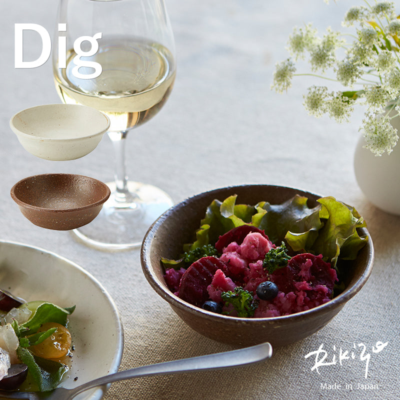 土から掘り出したばかりの素材感、洗練された佇まいをミックスした【Dig】シリーズ。ムダのないデザインは、和食でも、洋食でも、万能にお使いいただけます。煮魚ときんぴら、酢の物、ロールキャベツにサラダとパスタ、今夜はDigに何を盛りつけますか?