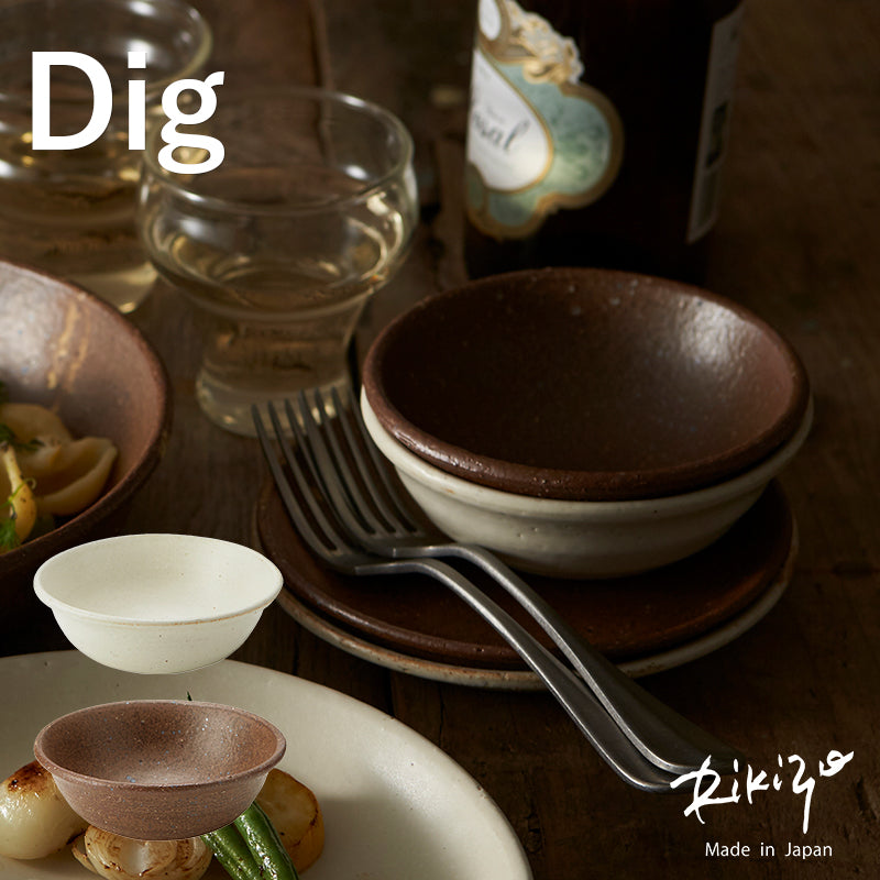 土から掘り出したばかりの素材感、洗練された佇まいをミックスした【Dig】シリーズ。ムダのないデザインは、和食でも、洋食でも、万能にお使いいただけます。煮魚ときんぴら、酢の物、ロールキャベツにサラダとパスタ、今夜はDigに何を盛りつけますか?