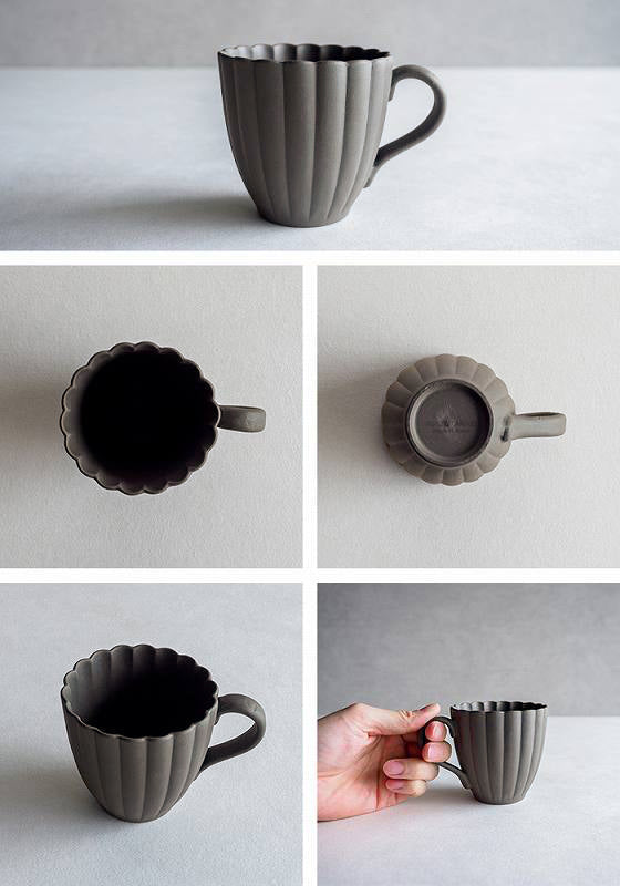 花をかたどっていながらキュートというよりは凛々しい表情。 味わい豊かな素材感と、流行に左右されないベーシックカラー展開で、 洗練された大人のニュアンスを醸し出す。
