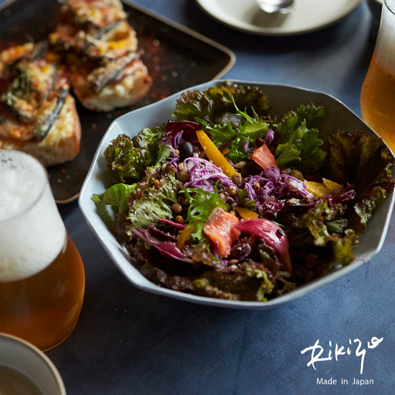 多角形にカットされたフォルムは、いつもの テーブルをスタイリッシュにイメージチェンジしてくれます。 それでいてアンティークのうつわに出会った時のような 懐かしさを感じさせるのは、手づくりのぬくもりがあるかもしれません。 色、サイズ感、軽さ…備わる全てに丁寧なこだわりを重ねました。