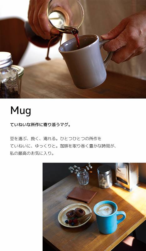 陶製ならではのぬくもりを感じさせる厚みと、思わず手にとってみたくなるサイズ感。そして何よりの魅力は、唇にそっと寄り添う絶妙なフォルム。やさしさから生まれたデザインです。