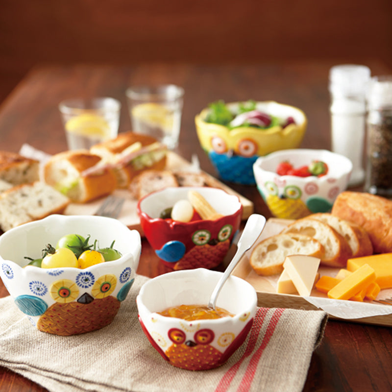 【4ピースセット】 ハッピーオウル ボウル カラフル
