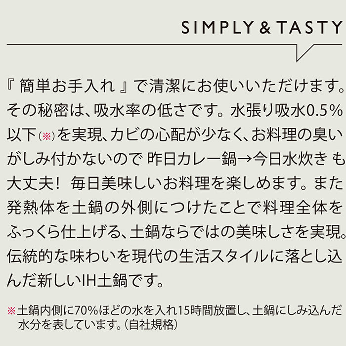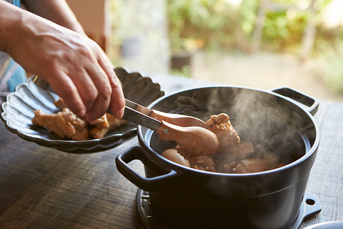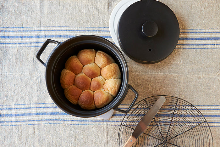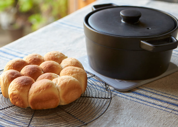 二重蓋の構造なのでしっかり蓄熱効果があり、いつもの料理をグンと美味しくいただけます。 IH 対応でじっくりコトコトと煮込めば、食材を柔らかく、しっかりと味付けをしみ込ませてくれます。 オーブンも使えるのでパン作りも手軽にでき、料理の幅が広がります。