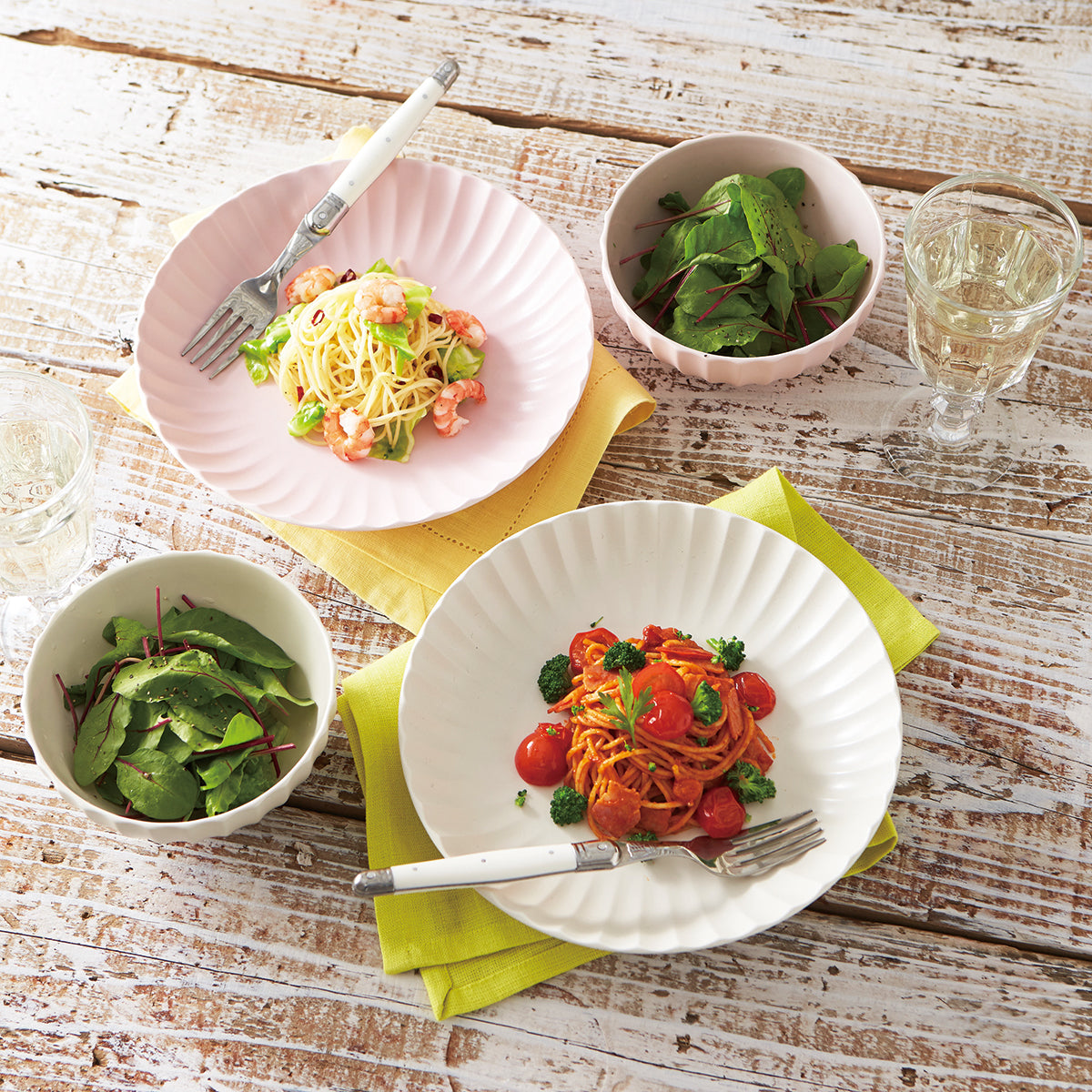 淡いピンクとベージュがロマンチックな雰囲気。フレンチシックなニュアンスで、甘すぎない絶妙のバランス感覚で仕上げているから、ずっと長く愛用できそう。