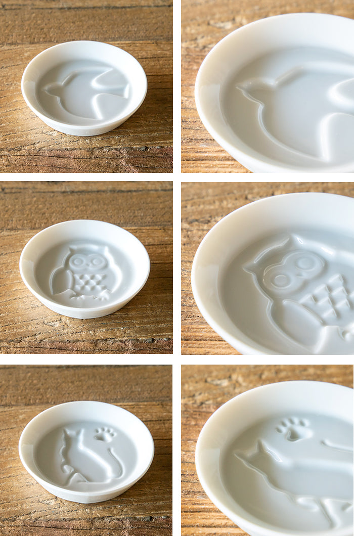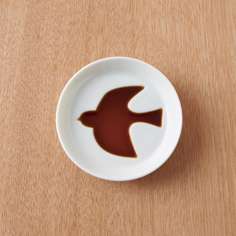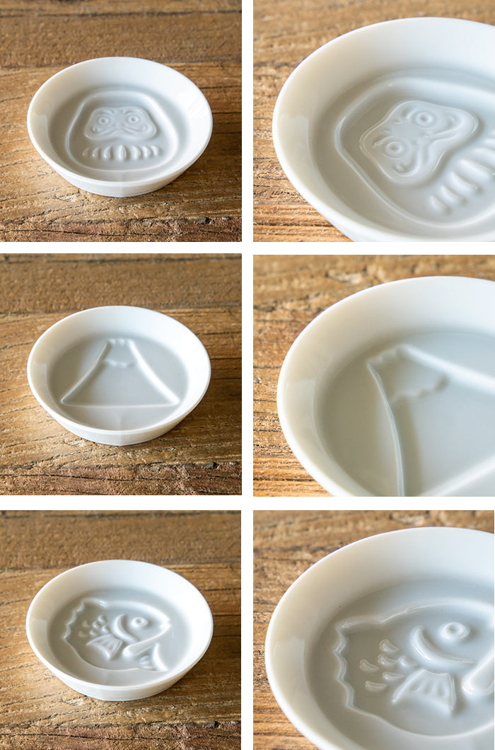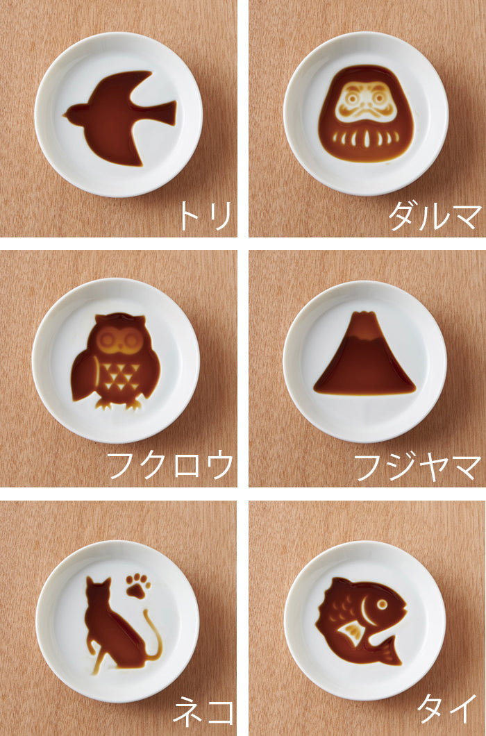 白いお皿にしょうゆを注ぐとキュートで縁起の良い絵柄が浮かび上がります。海外のお客様への贈り物としても喜ばれそうな小さなお皿です。