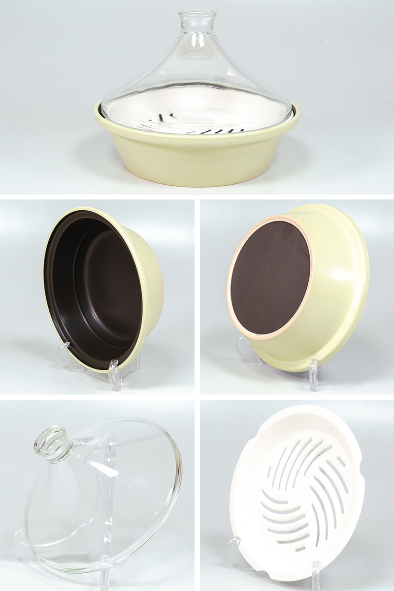 材質 | ・蓋:耐熱ガラス、本体:耐熱セラミック、スノコ:硬質陶器 |