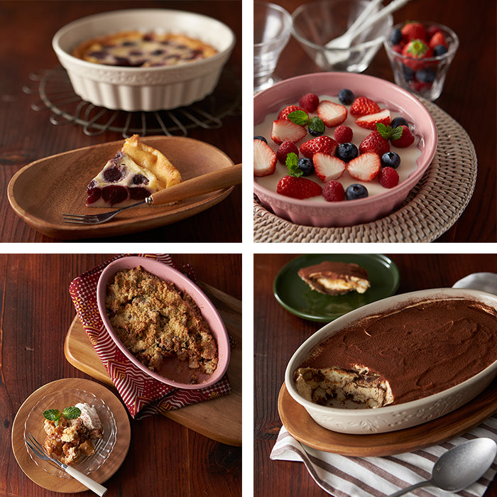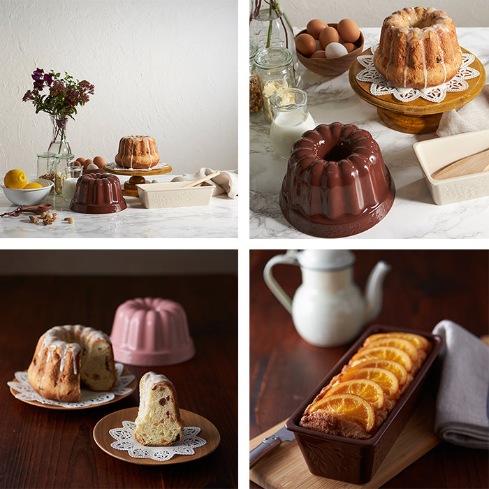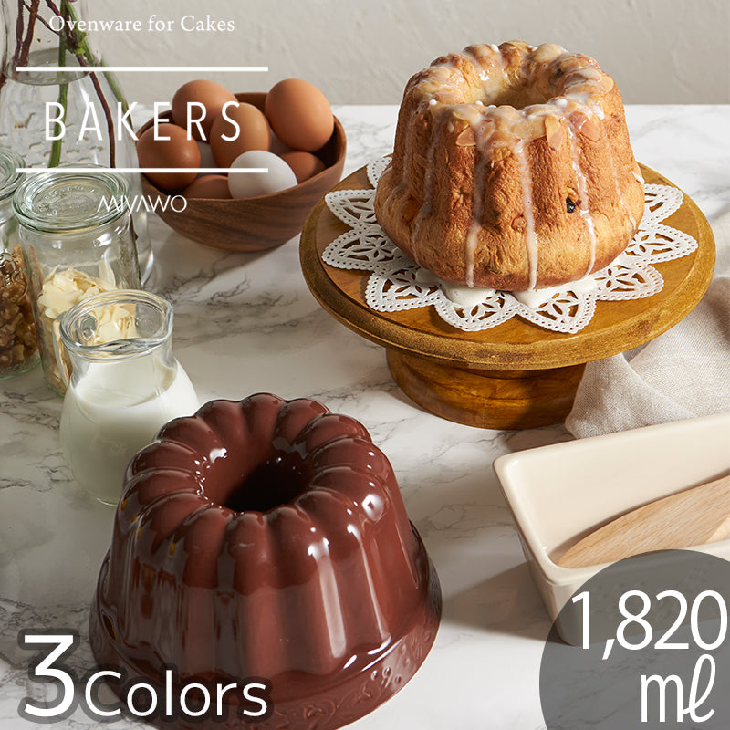 欧米では陶器の菓子型が多くありますが、日本では一般的ではありません。 日本での主流は、アルミやフッ素加工した金属製やシリコン製などですが、錆の発生や変形、また食材によっては酸化等が起こる場合があります。 また、これらはあくまで調理器具なので、そのままテーブルには出せません。 BAKERSは陶器製。焼きたてをそのままテーブルに出したり、型に入れたまま保存して味を浸み込ませたりと、容器を活かしたお菓子づくりが楽しめます。