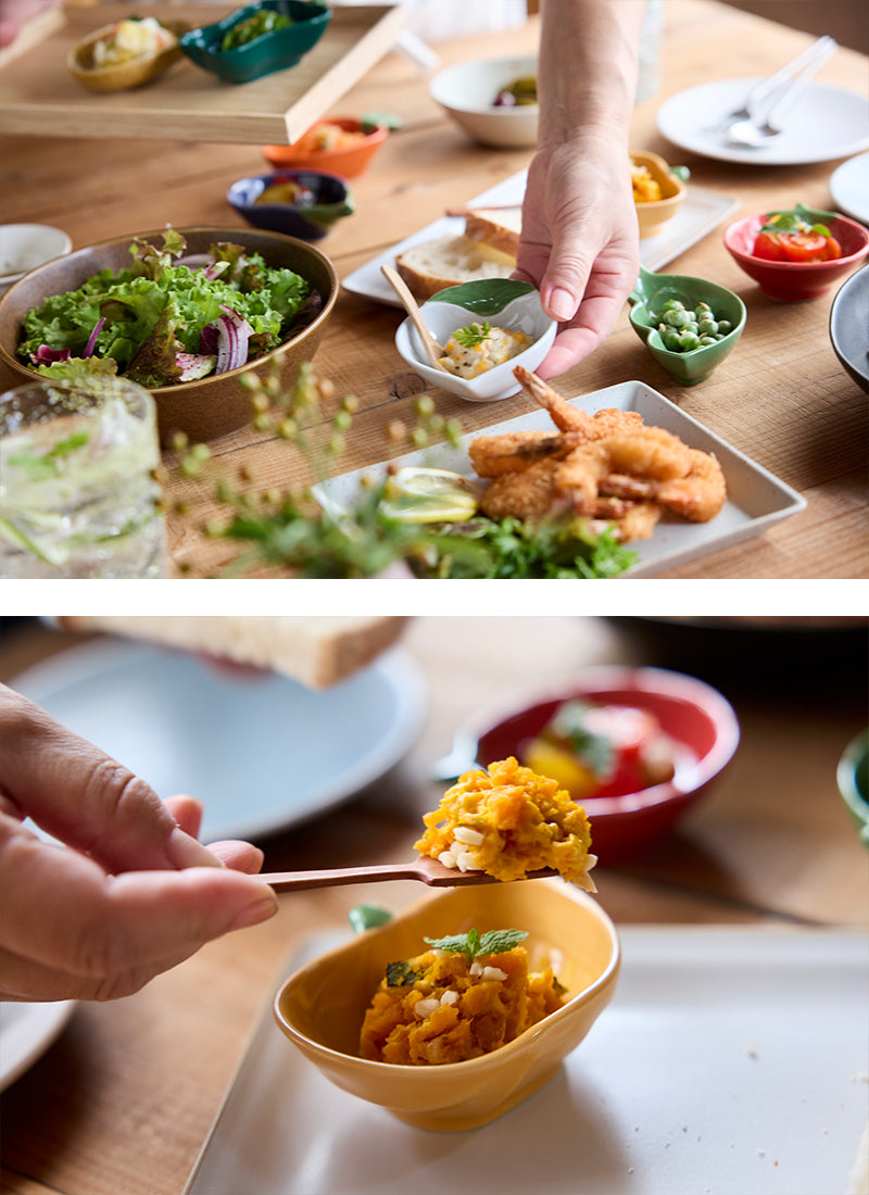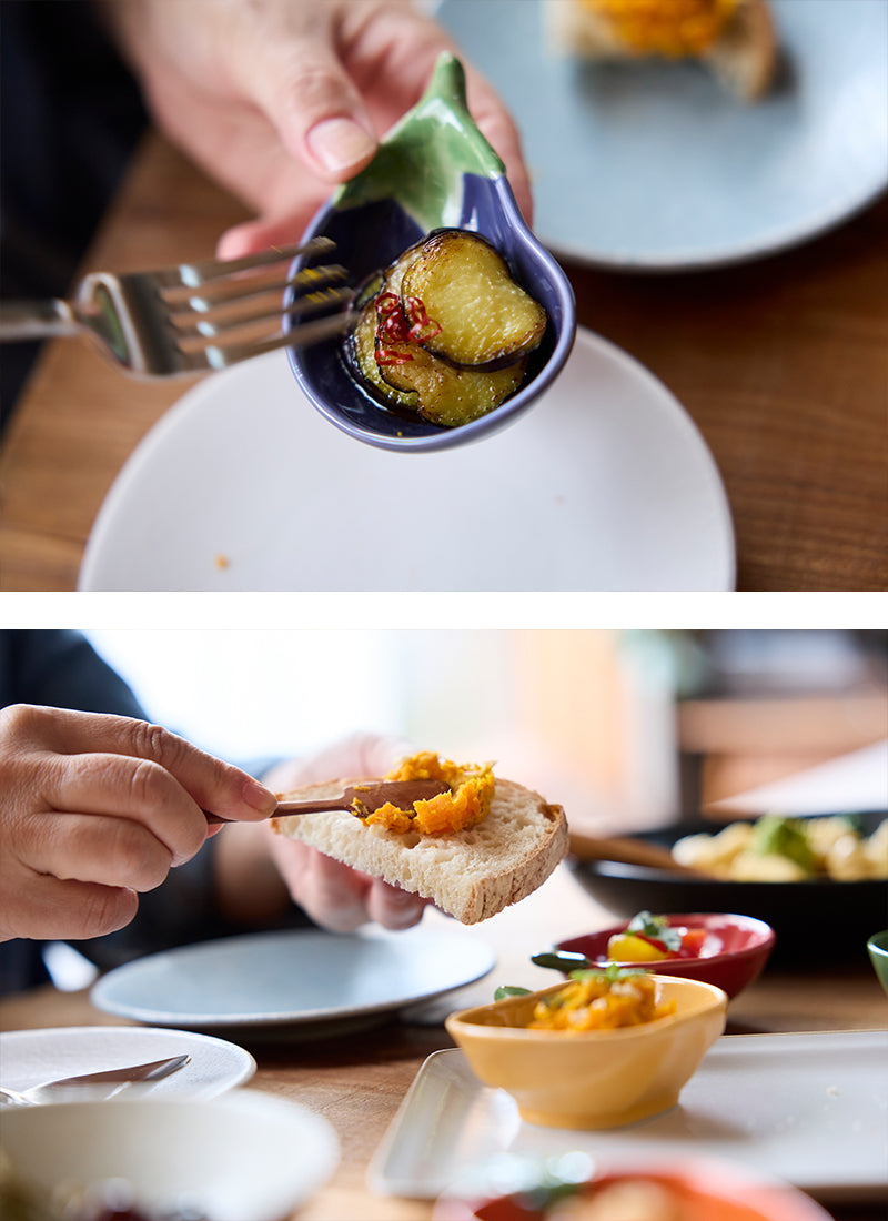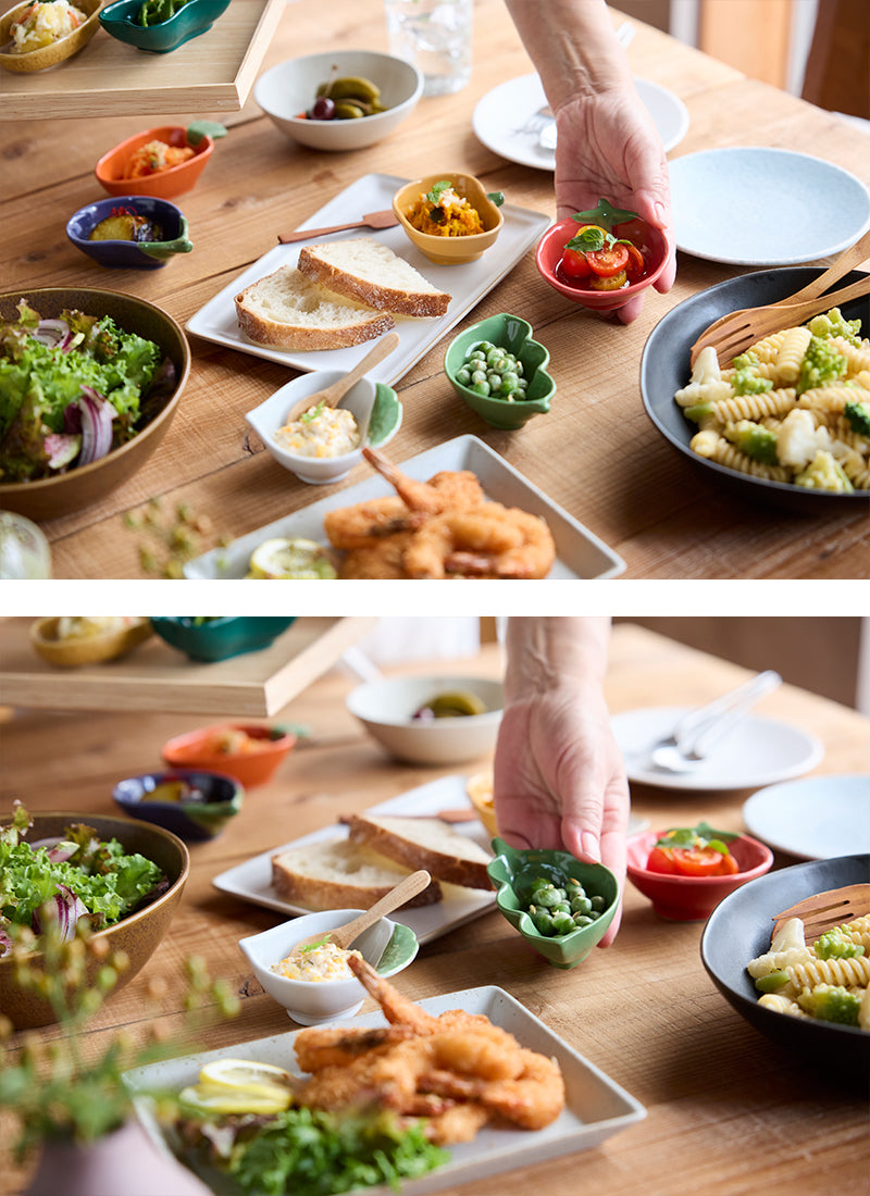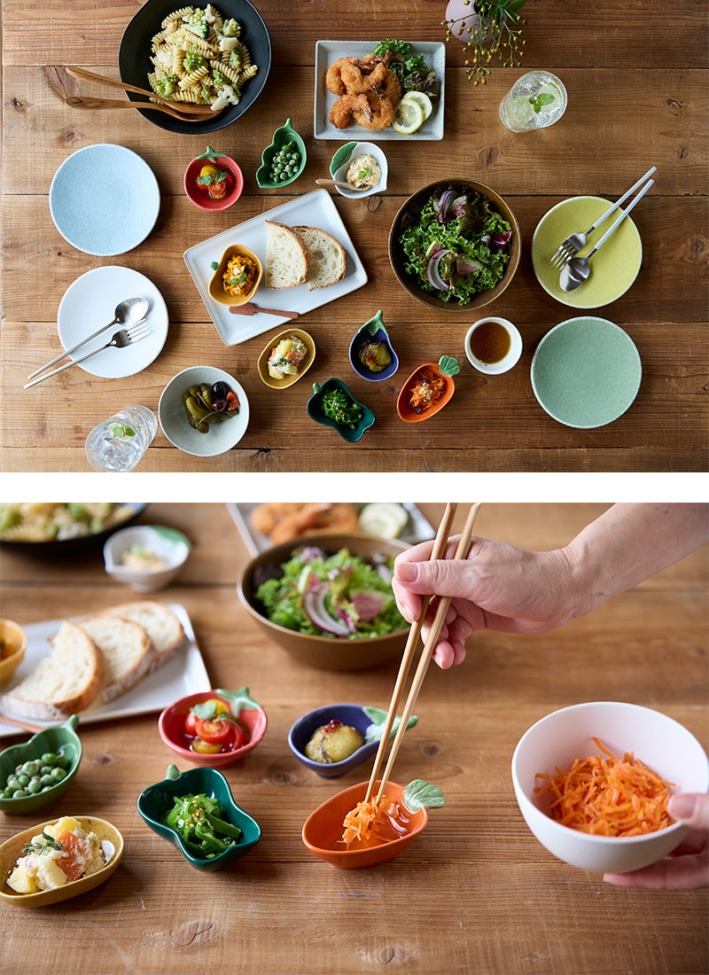 手のひらにコロンと収まるかわいい野菜小鉢。ソース用にも箸休めのお料理用にもいろいろ使えちゃう便利な大きさでテーブルを可愛く彩りますよ。